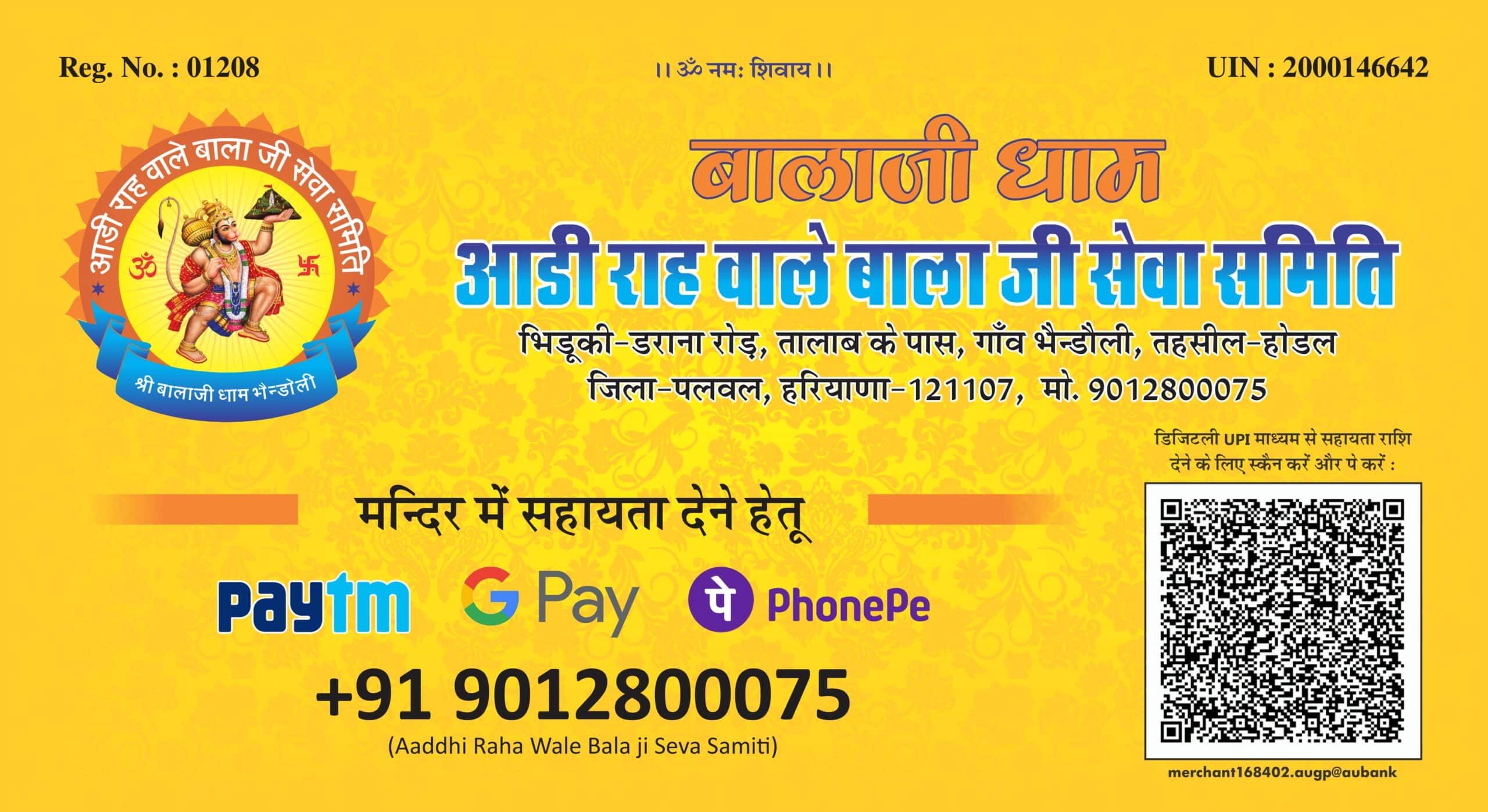 A/C Name :- Aaddhi Raha Wale Bala Ji Seva Samiti